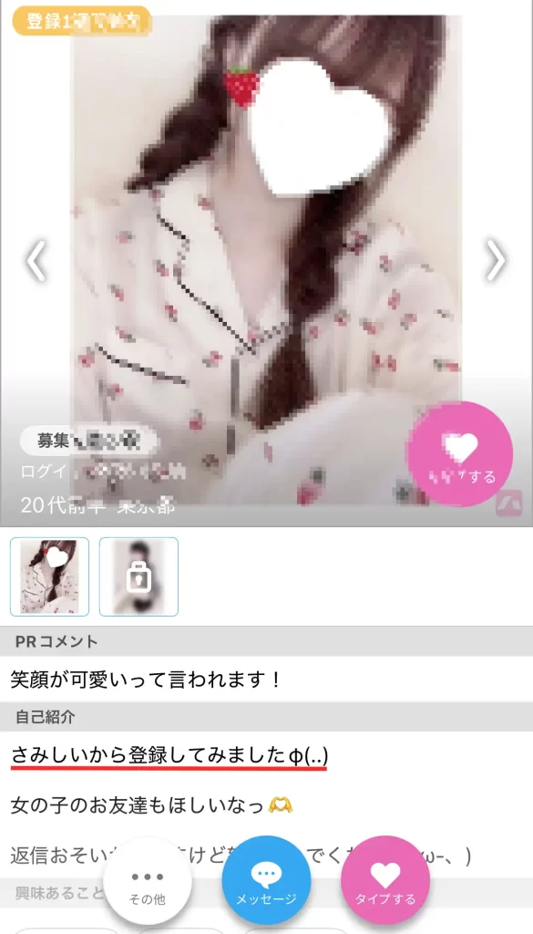 また、女性からメッセージを送ってくる場合、プロフ写真は大体可愛い写真なのも注意すべきポイント。
