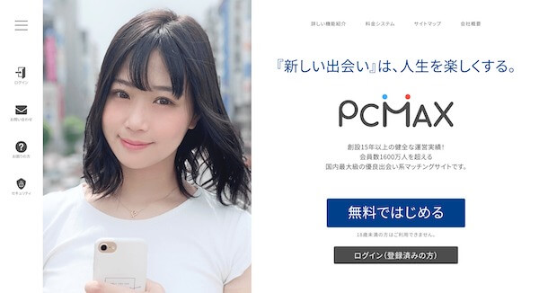 PCMAXは会員数2,000万人以上の老舗マッチングアプリです。2002年からサービスが続いていて、24時間有人サポート・管理体制もしっかりしていますよ。