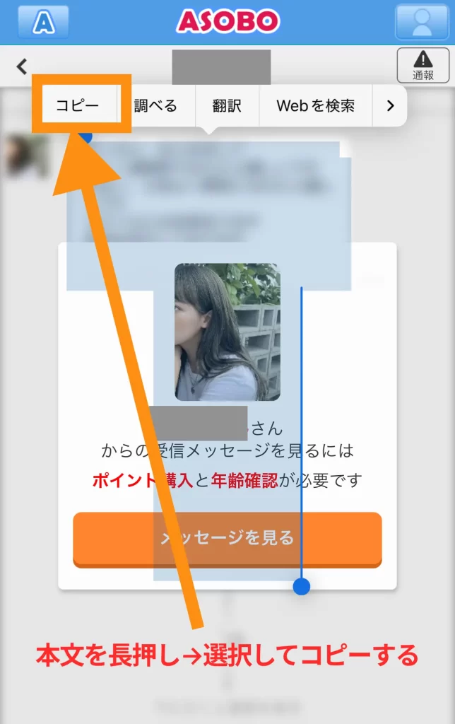 通常、ASOBOではメッセージを開こうとすると、以下のように「ポイントを購入してください」という警告が表示されるため、課金しないと内容を確認できません。