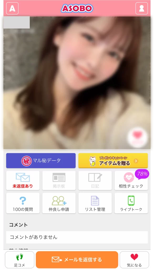 → ASOBOでセフレを作るには、それなりの時間と労力が必要。短期間でサクッと出会うのは難しい。
