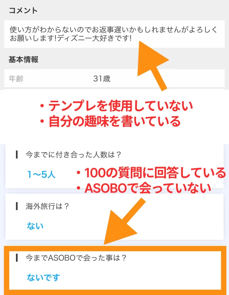 - 「はじめまして!気になって連絡してみました♪」(登録直後なのにプロフィールを見ているはずがない)