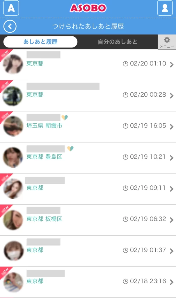 ASOBOには「あしあと機能」があり、自分のプロフィールを閲覧した女性を確認できます。しかし、特定のアカウントが何度も足跡をつけてくる場合は注意が必要です。
