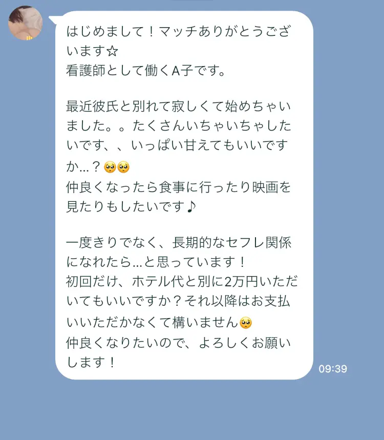 実際に僕が引っかかりそうになったサクラのメッセージはこちら!