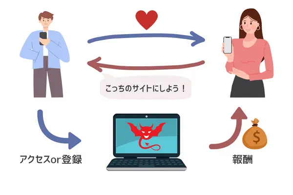業者は、他のサービスへ誘導することで、誘導先のサービスから報酬をもらっていることがあります。