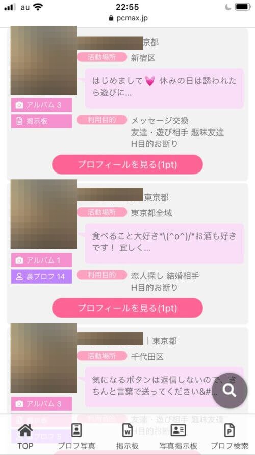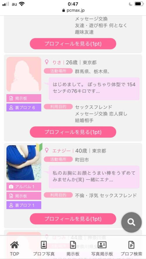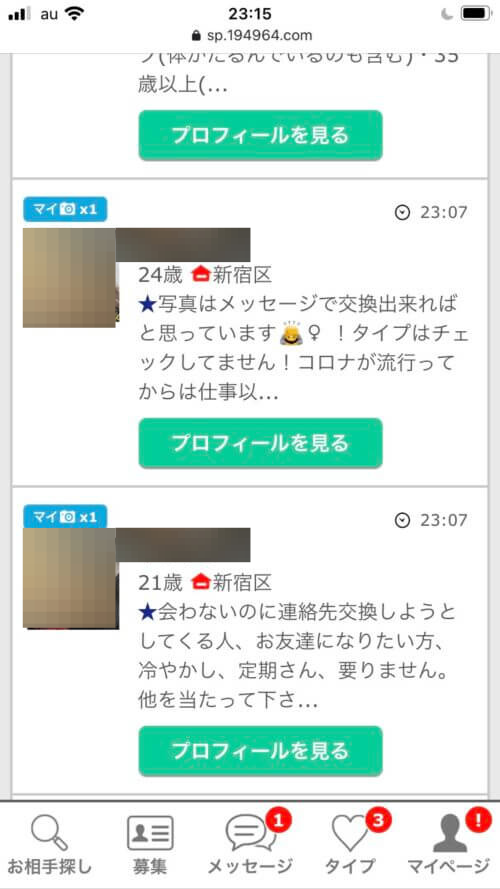 ここまですればプロフィール検索できる毎回同じ顔の人見るし、大体はプロフィール見れば素人か業者か判別できるようになった。