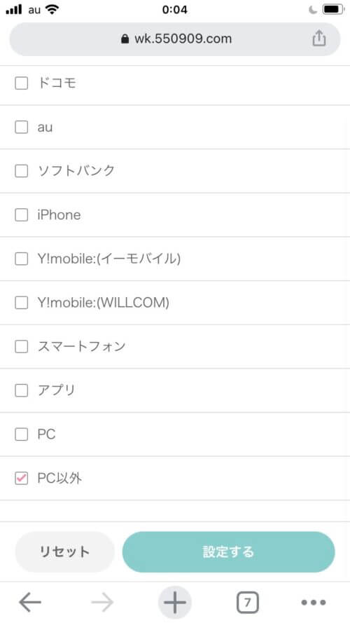 - キャリアを「PC以外」に設定する