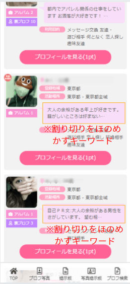 そして素人は割り切りをほのめかすために、プロフィールに「大人の余裕がある方を希望」というような隠語をよく使います。